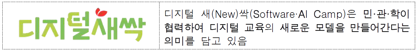 「디지털 새싹 캠프」는 초·중·고 학생들에게 소프트웨어‧인공지능을 체험하고 디지털 역량을 함양할 수 있는 기회를 제공하는 교육 프로그램이다.