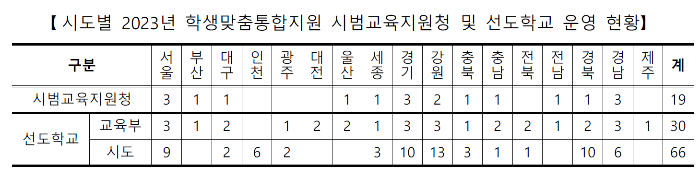 교육부(부총리 겸 교육부장관 이주호)와 17개 시도교육청은 학생의 복합적인 어려움 해소를 위한 학생맞춤통합지원 체계 구축을 위해 2023년 19개 시범교육지원청과 96개 선도학교를 운영한다고 밝혔다.