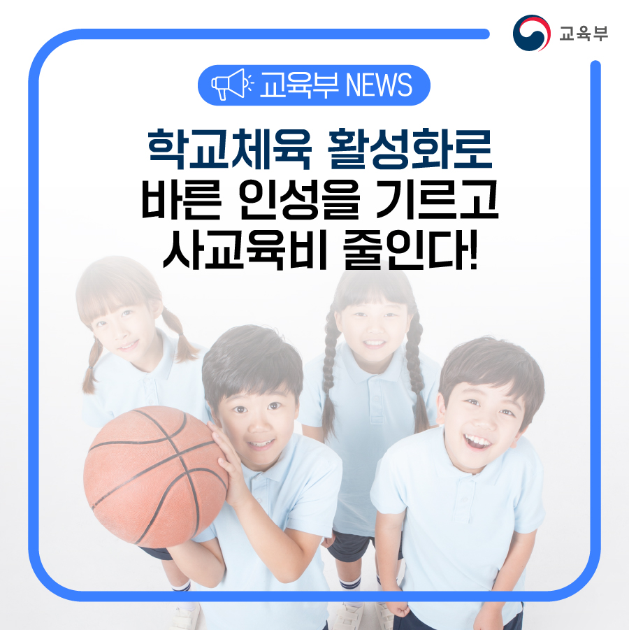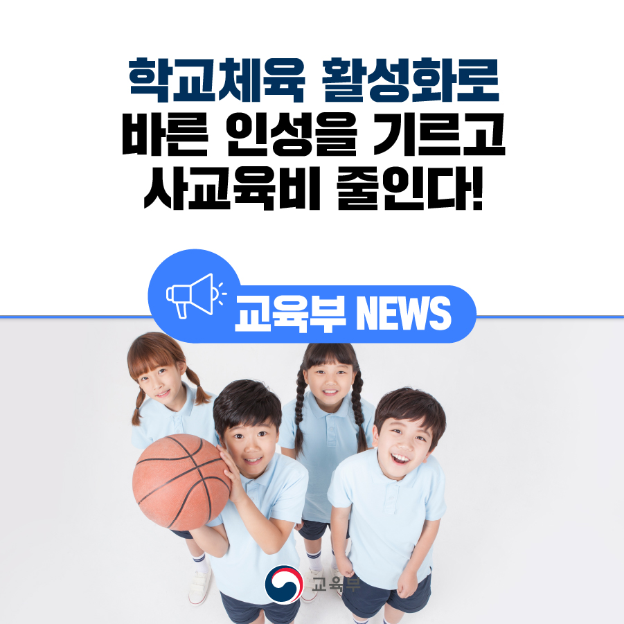 교육부(부총리 겸 교육부장관 이주호)는 모든 학생이 공감·배려·협력 등 바른 인성을 길러 학교폭력을 근절하고 체육 활동에 대한 학부모의 사교육 수요를 공교육으로 흡수하는 방안을 중점 추진하는 2023년 학교체육 활성화 추진 계획을 수립하여 시도교육청에 안내하였다.
