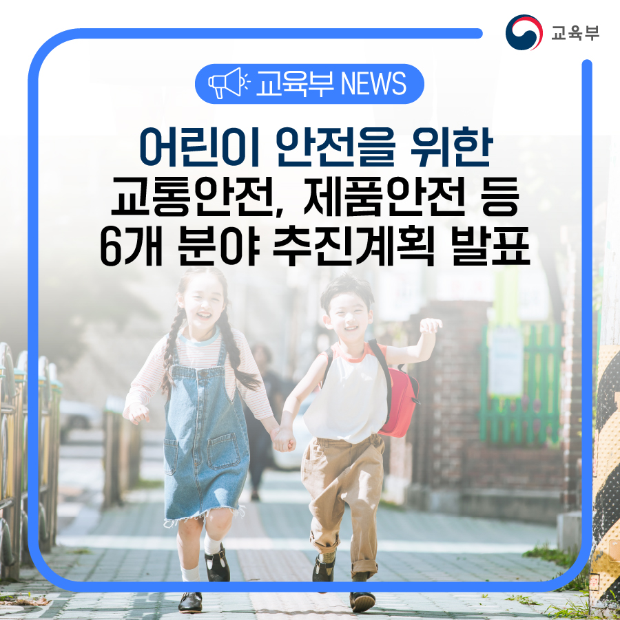 시행계획은 ‘어린이안전 최우선 생활환경 개선 및 사회문화 조성’을 목표로 ▴교통안전 ▴제품안전 ▴식품안전 ▴환경안전 ▴시설안전 ▴안전교육 6개 분야별 추진계획을 담았다.