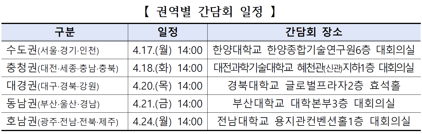 교육부(부총리 겸 교육부장관 이주호)는 4월 17일(월), 한양대학교(서울캠퍼스)에서 「유학생 유치 경쟁력 제고방안((가칭)Study Korea 3.0)」 수립을 위한 첫 권역별 간담회를 개최한다.