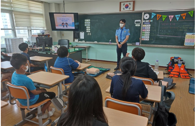 연안이란 강이나 호수, 바다를 따라 잇닿아 있는 육지를 가리키는데요. 찾아가는 연안 안전교육은 한국 해양 안전협회와 해양경찰이 함께 진행하는 초·중·고 청소년을 대상으로 하는 교육과정입니다. 생존수영법, 응급처치법, 연안 사고 및 선박사고 대처법 등 마네킹 등을 활용한 심폐소생술 실습하고 구명조끼를 직접 착용해보며 안전교육을 진행합니다.