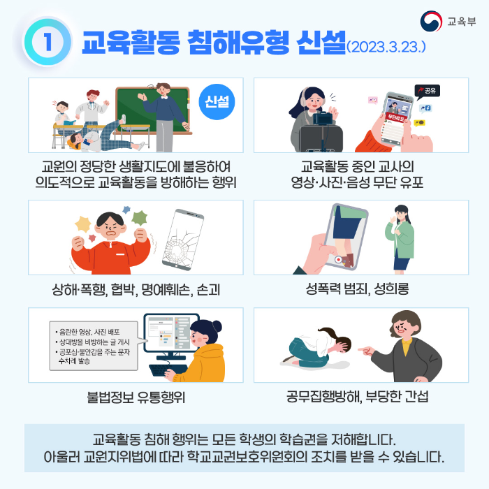 ✔️교육활동 침해유형 신설(2023.3.23.)