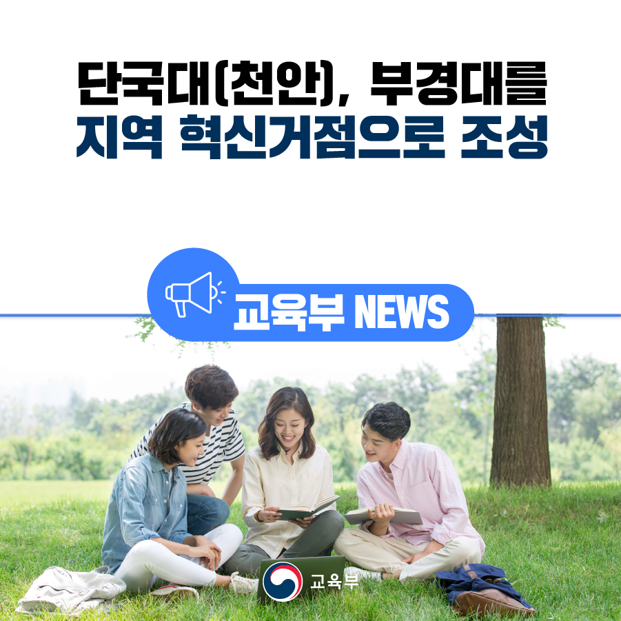 교육부(부총리 겸 교육부장관 이주호), 국토교통부(장관 원희룡), 중소벤처기업부(장관 이영)는 4월 19일(수), 단국대학교(천안캠퍼스)와 부경대학교를 2023년 캠퍼스 혁신파크 신규 후보지로 최종 선정한다고 밝혔다.