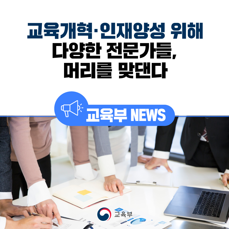 교육부는 교육개혁의 성공적 추진을 위해 교육정책 자문위원회 위원들을 위촉하여 전문가 및 현장과 활발히 소통해 나간다. 위원회는 3대 교육개혁 분과별로 논의하되, 새롭게 제기되는 교육 쟁점들에 유연히 대응할 수 있도록 개방형으로 운영하여, 논의 주제에 따른 분과 또는 관련 전문가도 지속 발굴·추가해 나갈 계획이다.