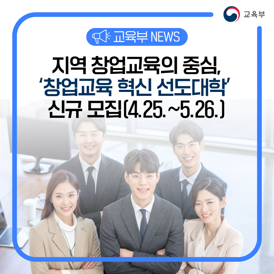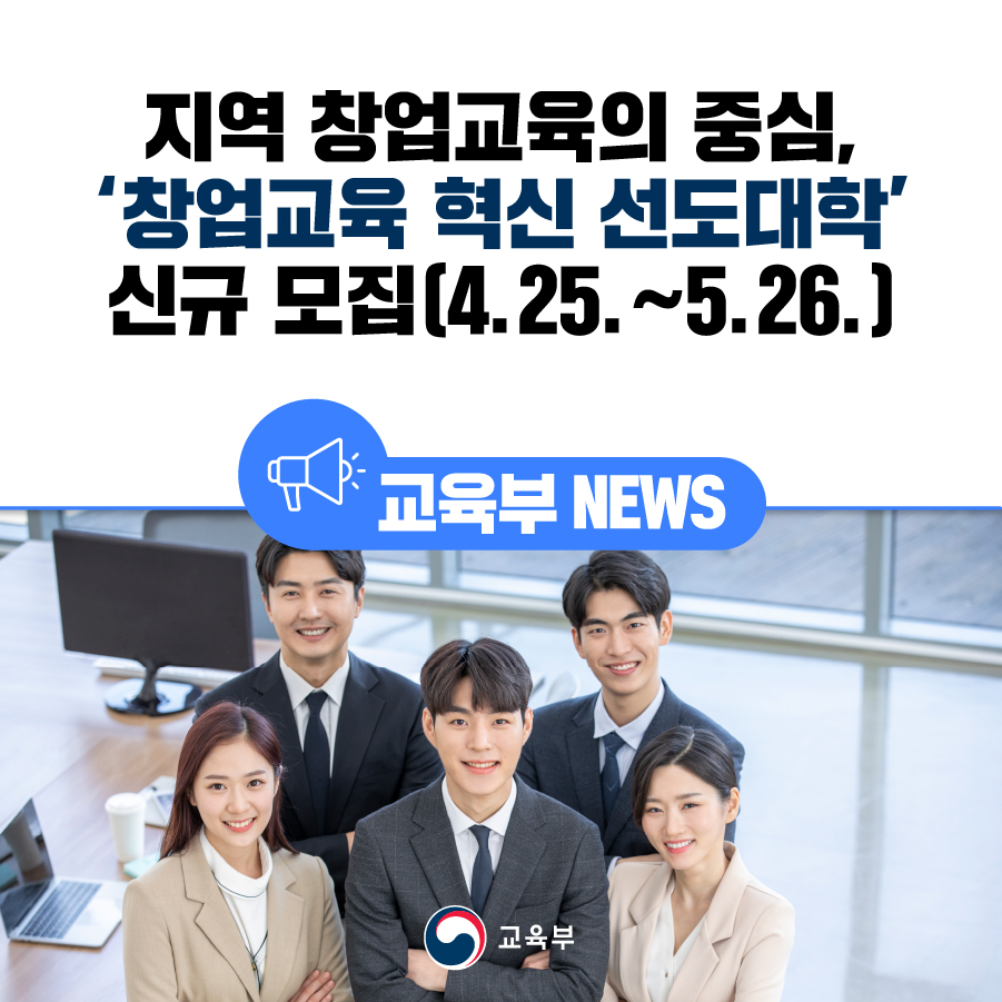 지역 창업교육의 중심, ‘창업교육 혁신 선도대학’ 신규 모집(4.25.~5.26.) 본문