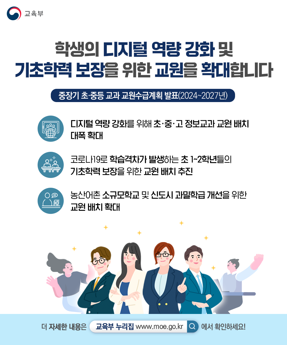 학생의 디지털 역량 강화 및 기초학력 보장을 위한 교원을 확대합니다