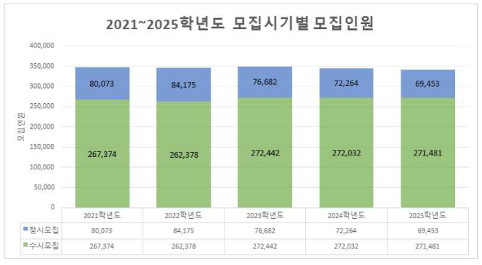- 2023학년도 349,124명 → 2024학년도 344,296명 → 2025학년도 340,934명