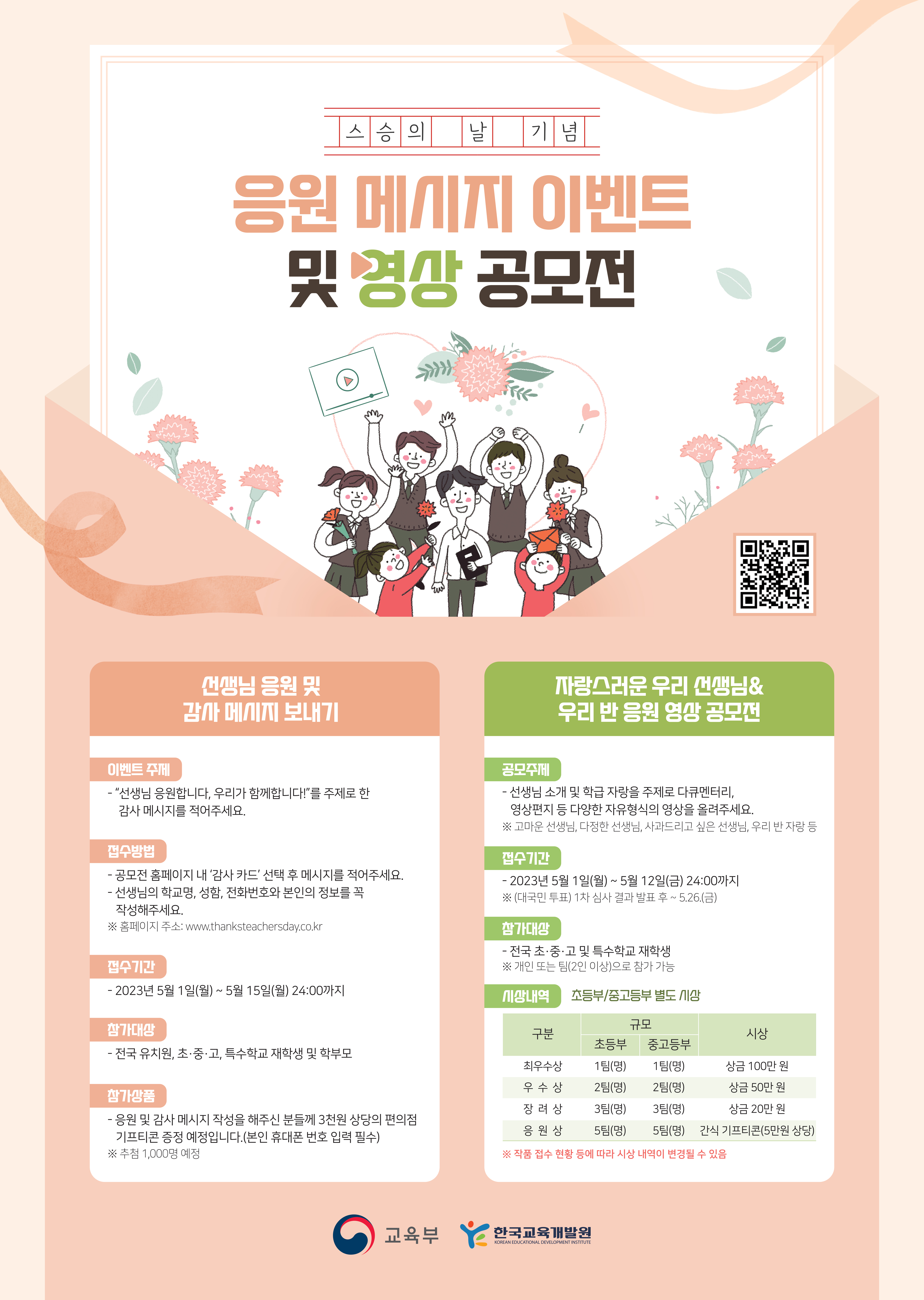 스승의 날 기념 응원 메시지 이벤트 및 영상 공모전을 개최합니다!