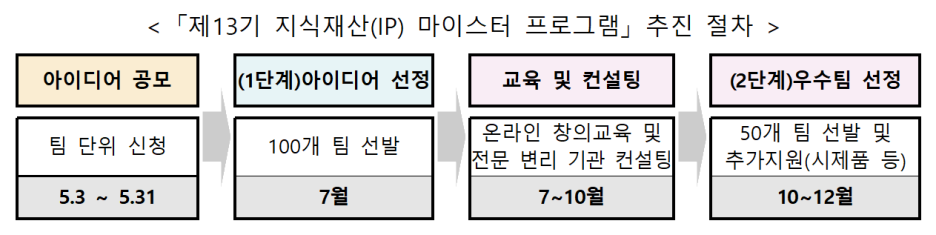 - 제13기 ‘지식재산(IP) 마이스터 프로그램’ 참가모집 공고(5.3.~5.31.)