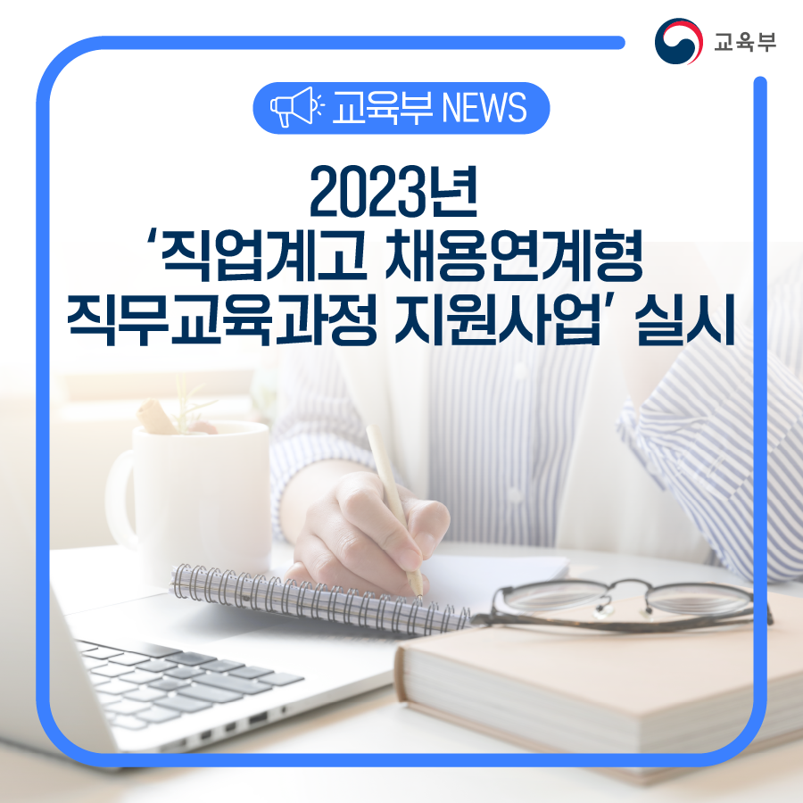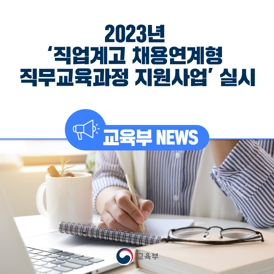 교육부(부총리 겸 교육부장관 이주호)는 고졸 취업지원 강화를 위해 전국 직업계고 3학년(졸업 후 1년 이내 미취업자 포함) 1,350명을 대상으로 2023년 '직업계고 채용연계형 직무교육과정 지원사업'을 실시한다.