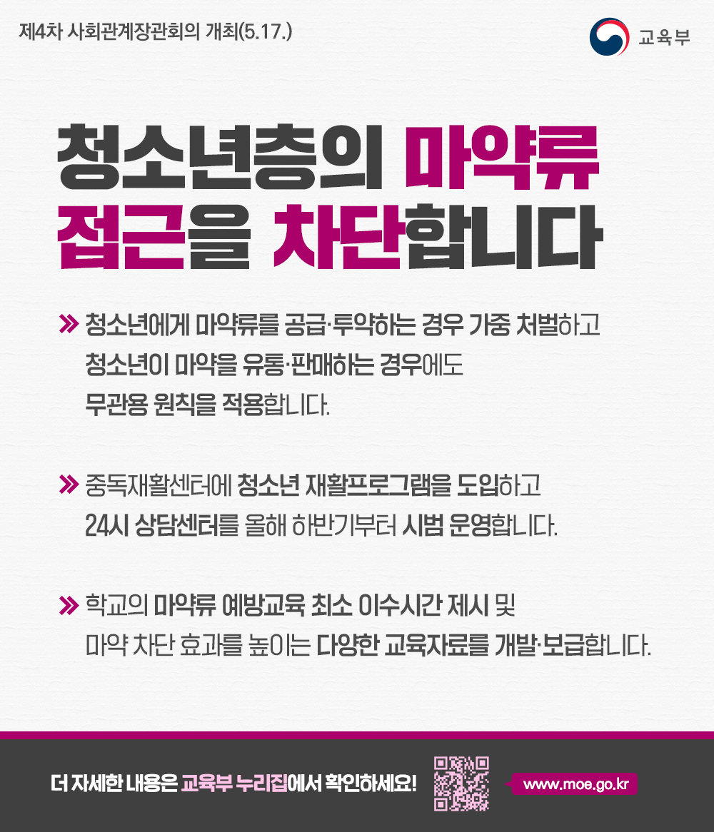 #교육부 #제4차 #사회관계장관회의 #청소년층 #마약류 #접근차단