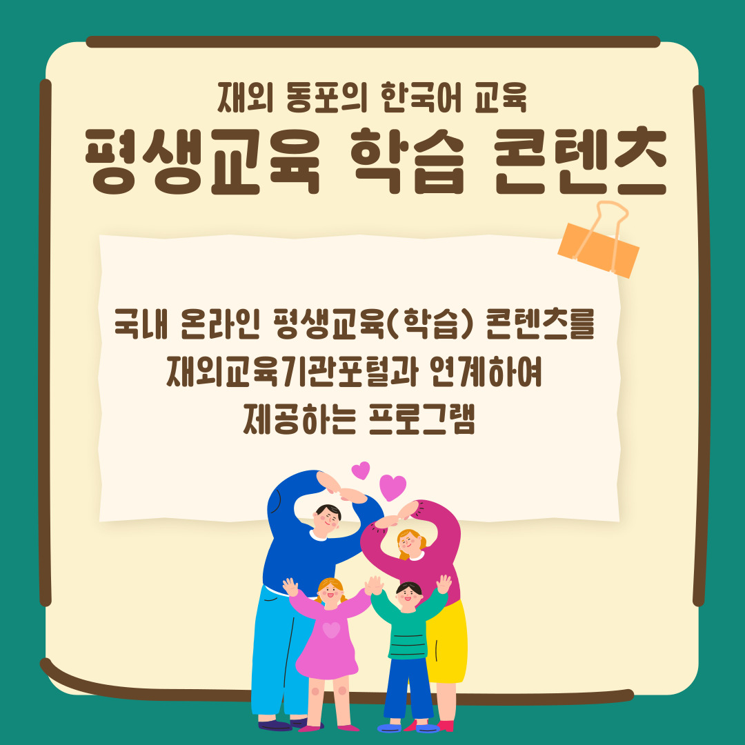 재외동포의 한국어 교육을 위해 온라인 평생교육 콘텐츠를 제공하고 있는데요. 작년 7월부터 재외교육기관포털과 연계하여 한국어 교재, 교육 영상 자료 등을 제공하고 있습니다.