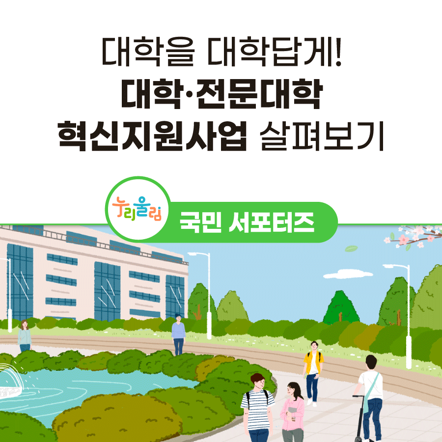 대학·전문대학 혁신지원사업을 통해 대학은 재정 부담을 줄고 교육의 질이 올라가 더 좋은 교육과 환경을 대학생에게 제공할 수 있을 것 같습니다.