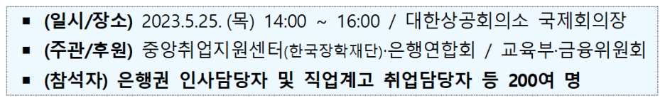 고졸 인재의 금융권 취업과 금융권의 우수 인재 채용 활성화를 위한 「금융아이티(IT) 인재 채용설명회」가 5.25.(목)에 처음으로 개최된다.