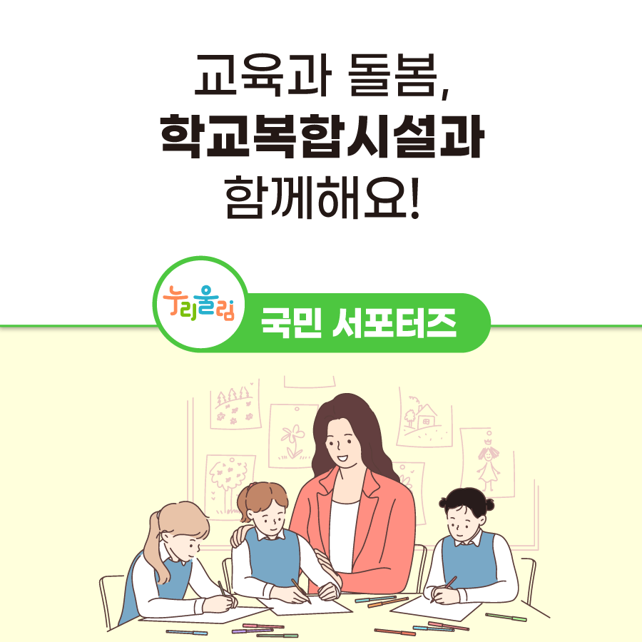 늘봄학교 수요와 지역 수요에 부합하는 학교에 학교복합시설을 설치하여 교육활동을 지원하고 돌봄의 공백을 해소할 수 있습니다.