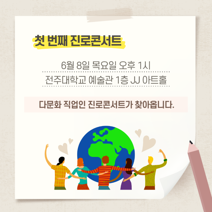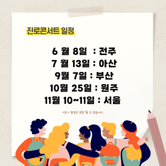 ✔️ 첫 번째 진로콘서트 : 6월 8일 목요일 오후 1시 전주대학교 예술관 1층 JJ아트홀