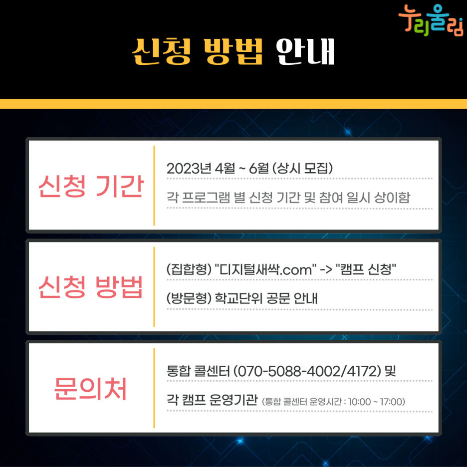 디지털새싹 캠프 신청 방법