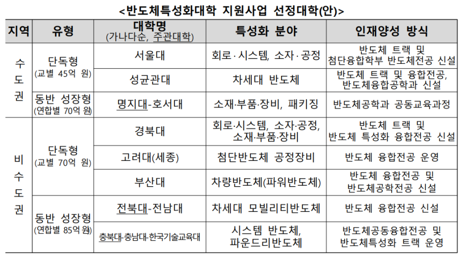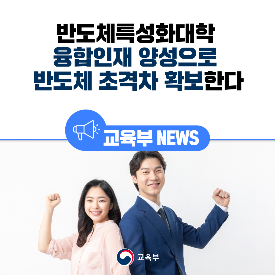 교육부(부총리 겸 교육부장관 이주호)와 한국산업기술진흥원(원장 민병주)은 「반도체특성화대학 지원사업」 선정 결과를 6월 14일(수)에 발표한다.