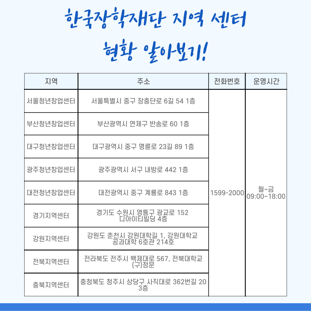 한국장학재단 지역 센터 현황