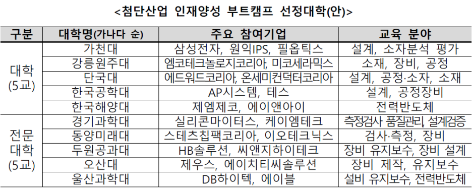 - 2023년 ‘첨단산업 인재양성 부트캠프’ 참여대학 10개교 선정