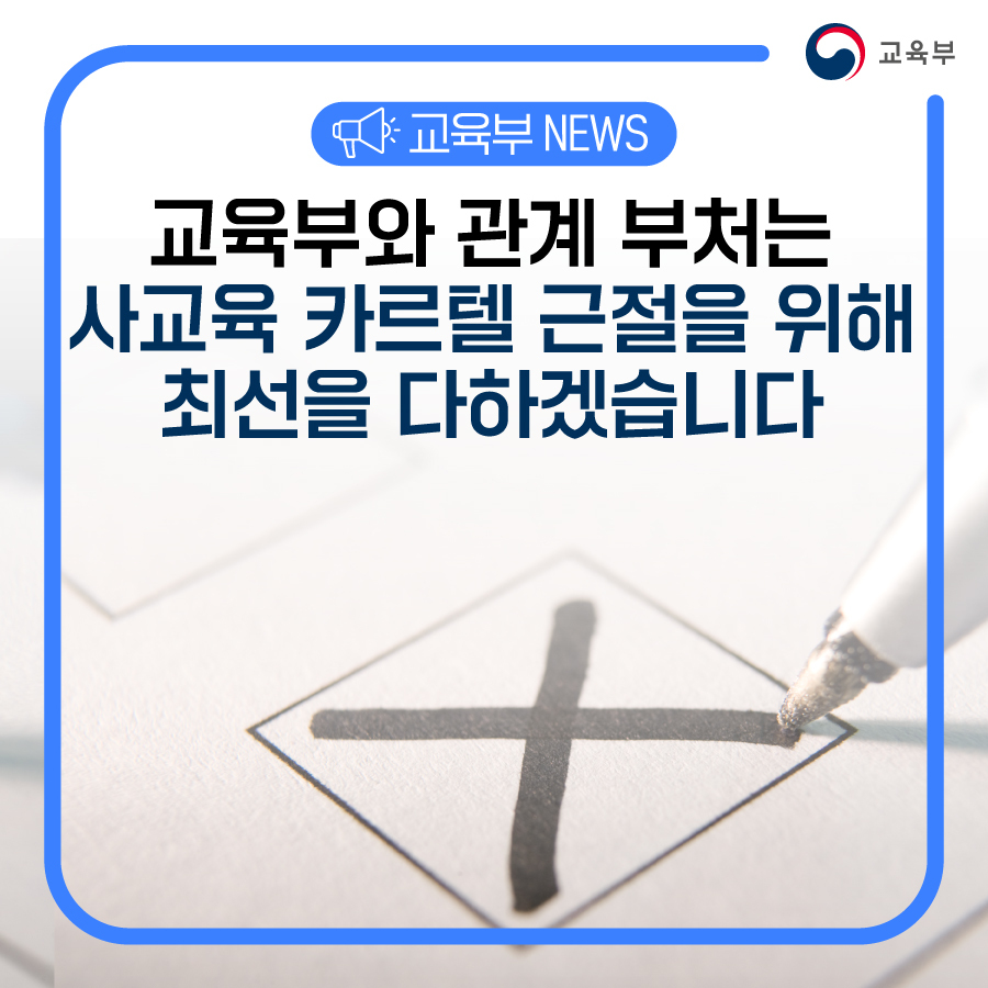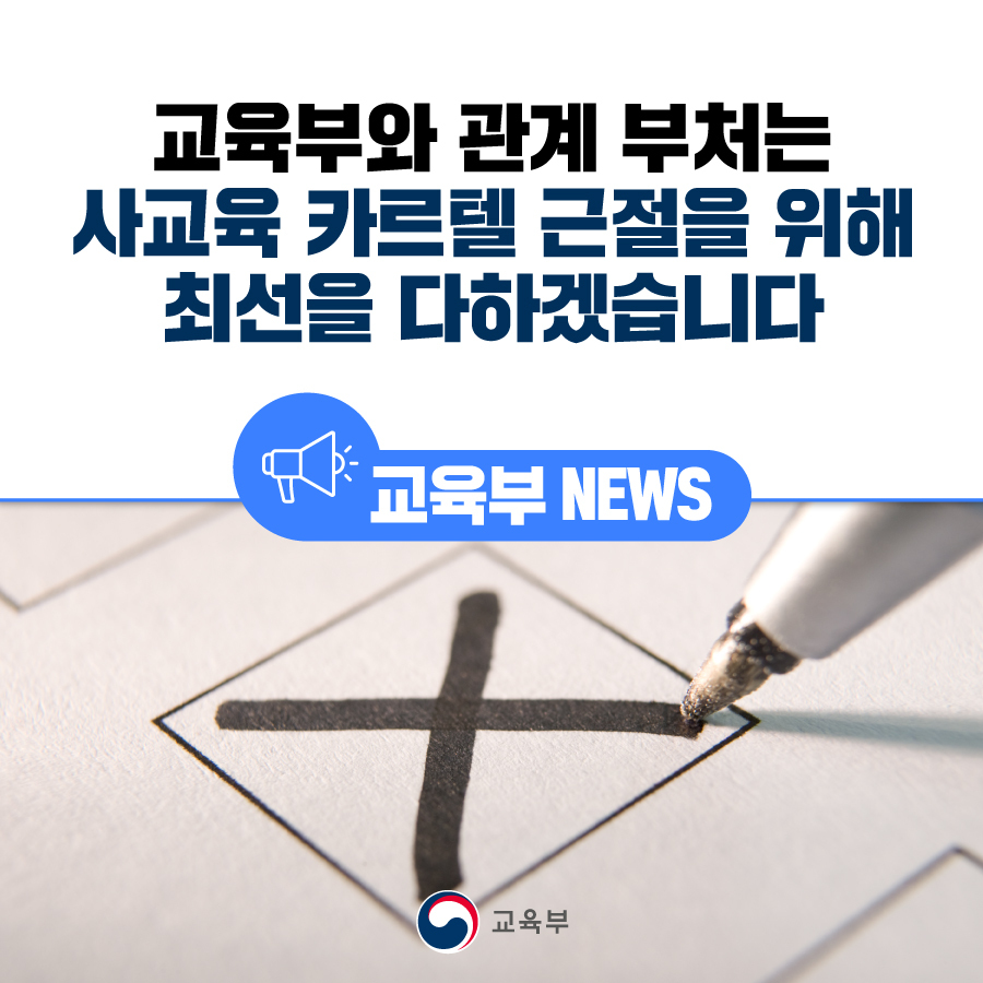 교육부와 관계 부처는 사교육 카르텔 근절을 위해 최선을 다하겠습니다. 본문