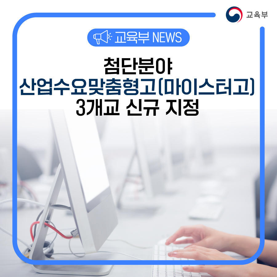 교육부(부총리 겸 교육부장관 이주호)는 디지털, 반도체 인재 양성을 위해 대구전자공업고, 예산전자공업고, 경북소프트웨어고 3개교를 2023년 산업수요맞춤형고등학교(이하 마이스터고)로 신규 지정한다.