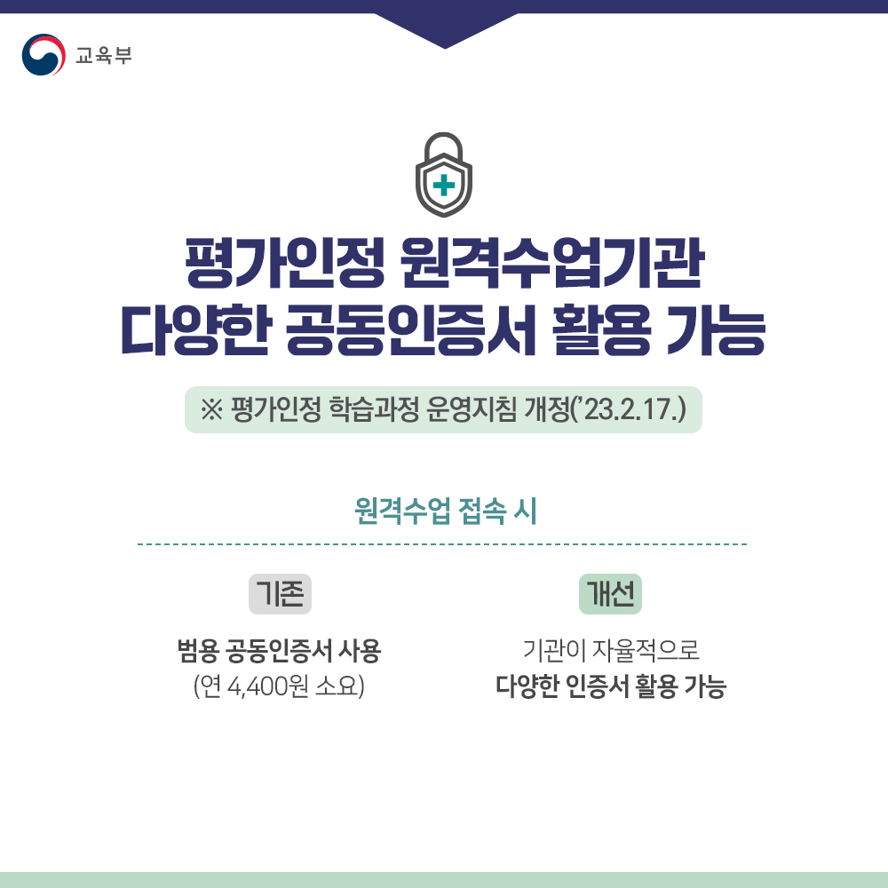 평가인정 원격수업기관 다양한 공동인증서 활용 가능