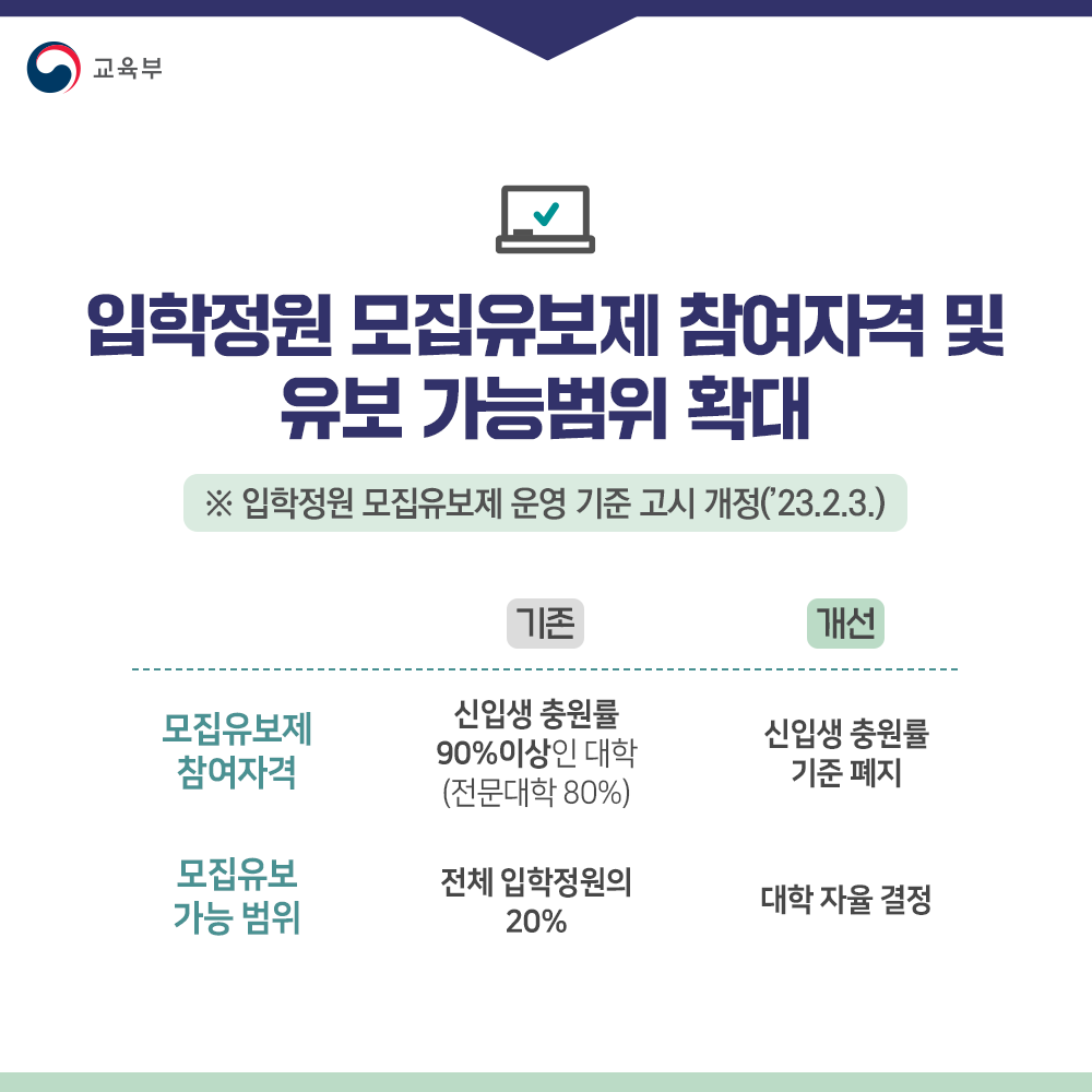 입학정원 모집유보제 참여자격 및 유보 가능범위 확대