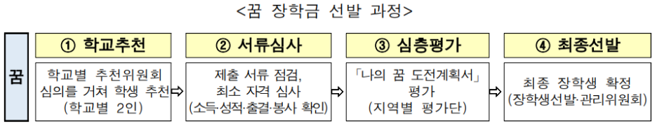 2023년 꿈 장학금 신청기간(4.3.∼4.28.)동안 전국 중·고등학생 총 4,849명(2,939개교)이 신청하였으며, 서류심사·심층평가를 거쳐 최종 학생 2,000명이 선발되었다.