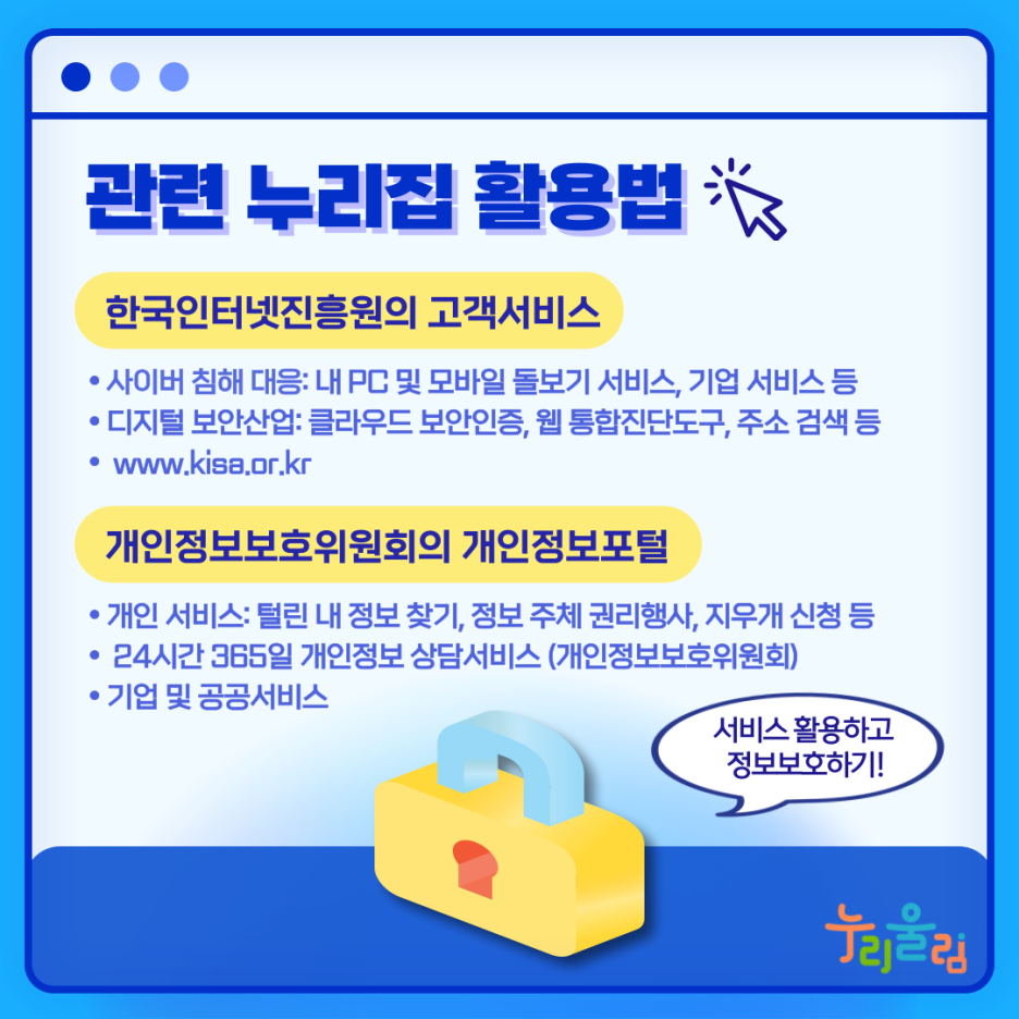 그럼, 정보보호 서비스를 더 쉽게 활용할 수 있는 곳을 알려드리겠습니다.