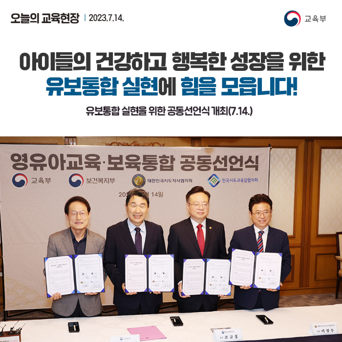 | 유치원·어린이집 관리체계 일원화로책임 있는 유보통합 실현하겠습니다 (0) | 2023.07.28 |