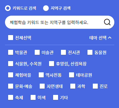 학생과 학부모, 교사 등 체험활동이 필요한 분들을 위해 체험학습 장소 검색 기능을 제공합니다. 제가 직접 활용했을 때 좋았던 점은 관심 있는 키워드로 장소를 쉽게 찾을 수 있었고, 현재 위치한 곳에서 체험할 수 있는 공간들을 세부 정보를 포함해 빠르고 쉽게 확인할 수 있었습니다. 해당 누리집에 로그인하면 체험학습 장소를 저장하여 차후에도 저장한 장소들을 확인할 수 있으니 아래 포털에 들어가 활용하시면 좋을 것 같습니다.