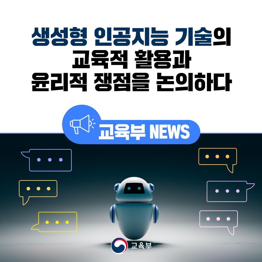 나주범 교육부 차관보는 “챗지피티(ChatGPT), 바드(Bard) 등 생성형 인공지능(AI) 기술이 날이 갈수록 빠르게 발전하여 우리 생활과 밀접해지고 있는 만큼 교육 현장에서도 새로운 기술을 윤리적·교육적으로 활용할 수 있도록 적극적으로 노력하겠다.”라고 밝힐 예정이다.