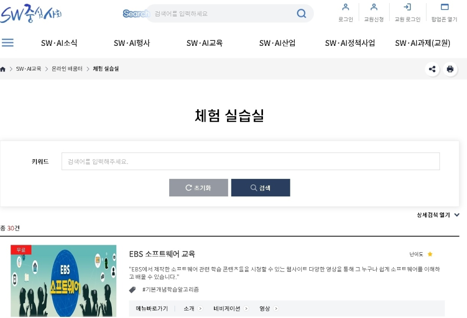 한눈에 SW·AI교육 확인하기! SW중심사회 누리집