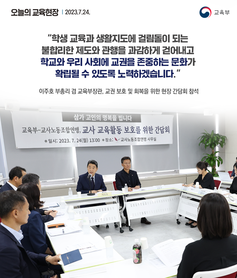 | 이주호 부총리, 교권 확립을 위한 현장교원 간담회 참석 (0) | 2023.07.26 |