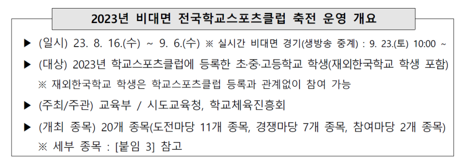 2023년 비대면 전국학교스포츠클럽 축전 개최 본문