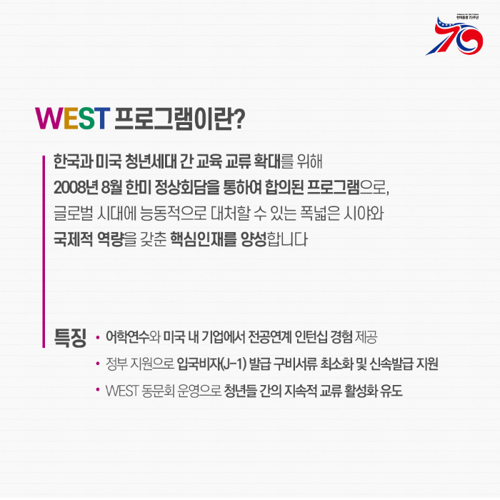 2023 한·미 대학생 연수 WEST(WORK ENGLISH STUDY TRAVEL) 하반기 지원자 모집 본문