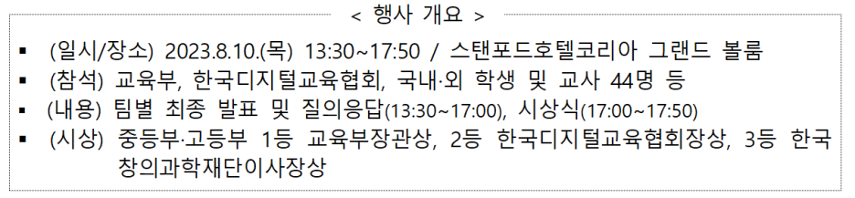 - 중·고등부 각 1등 팀에게 교육부장관상 수여