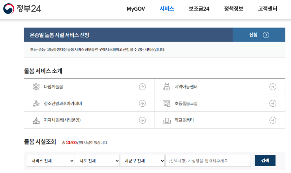 ▶ 정부 24 원스톱 서비스 : https://www.gov.kr/portal/onestopSvc/alldaycare