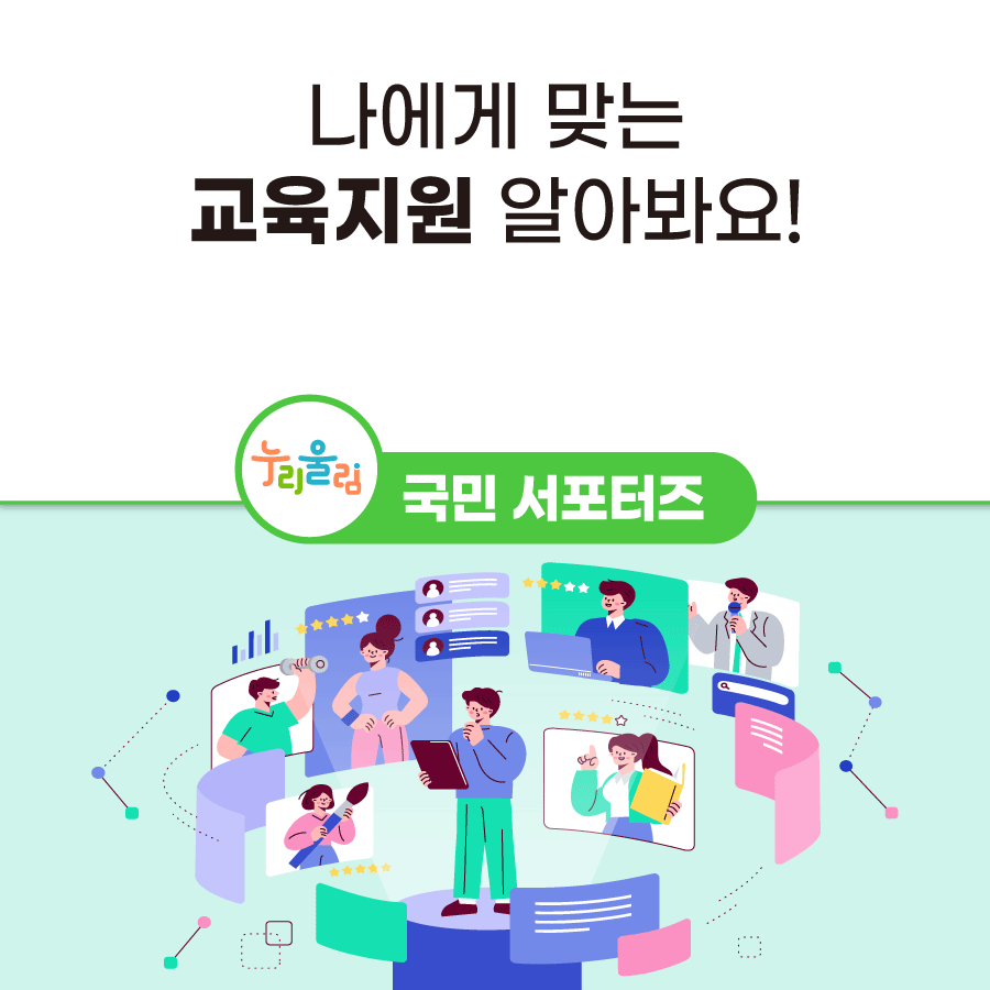 제가 소개한 누리집 외에도 다양한 교육지원 정책들이 있습니다. ‘교육지원 한눈에’ 누리집에서 학생, 학부모, 성인학습자 등 본인에게 맞는 교육지원을 한눈에 볼 수 있습니다. 다양한 교육지원이 있으니 많은 관심 바랍니다.