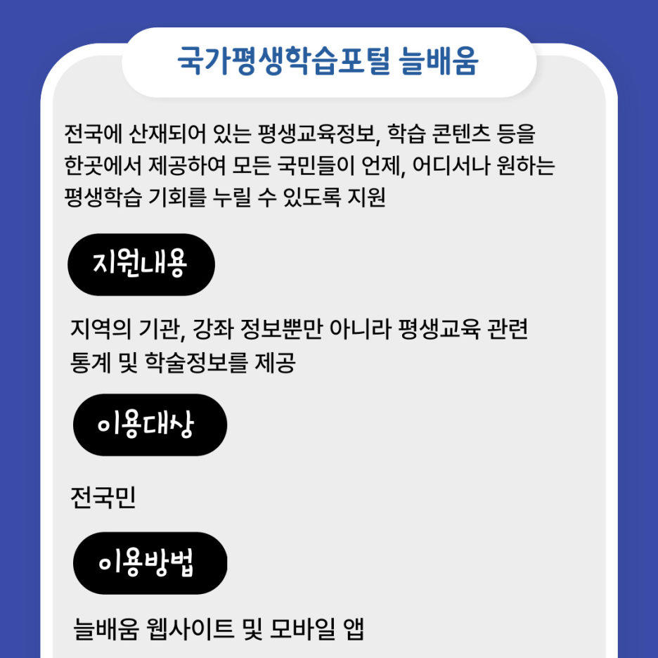 ▶ 국가평생학습포털 늘배움 : www.lifelongedu.go.kr