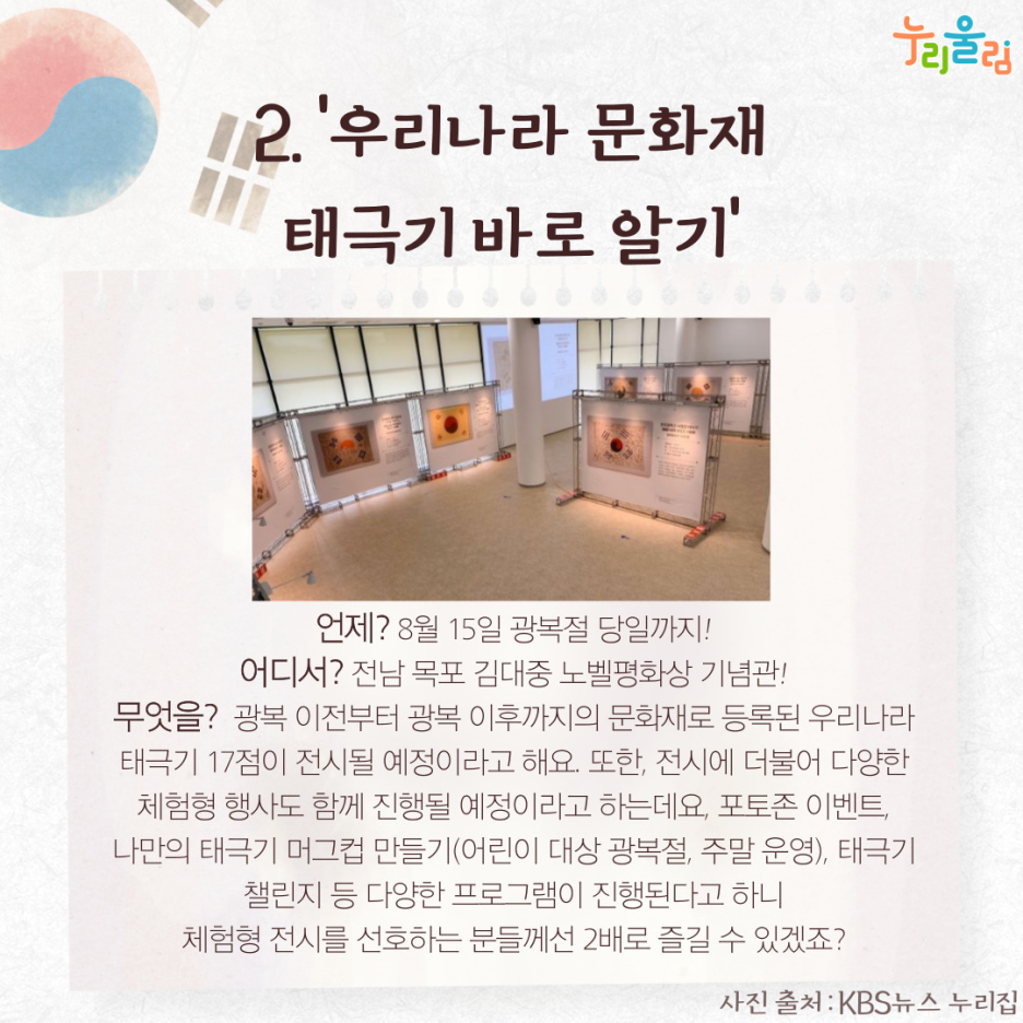 김대중노벨평화상기념관에서 진행하는 ‘우리나라 문화재 태극기 바로알기’ 특별전입니다.