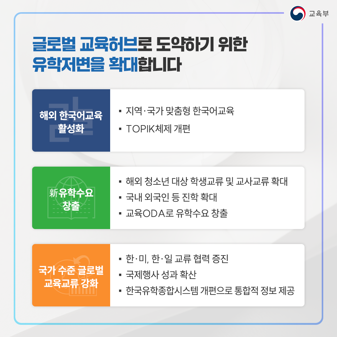 ✅ 글로벌 교육허브로 도약하기 위한 유학저변을 확대합니다