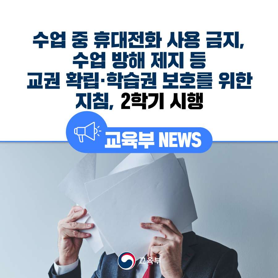 수업 중 휴대전화 사용 금지, 수업 방해 제지 등 교권 확립·학습권 보호를 위한 지침, 2학기 시행 본문
