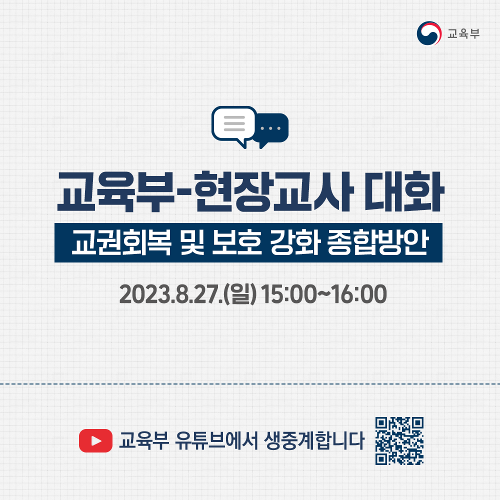 교육부와 현장교사가 함께하는 대화의 장이 교육부 유튜브에서 생중계됩니다 본문