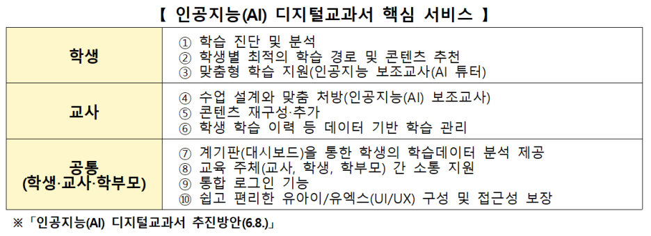 - 8월 30일(수) 「인공지능(AI) 디지털교과서 개발 지침」 발표