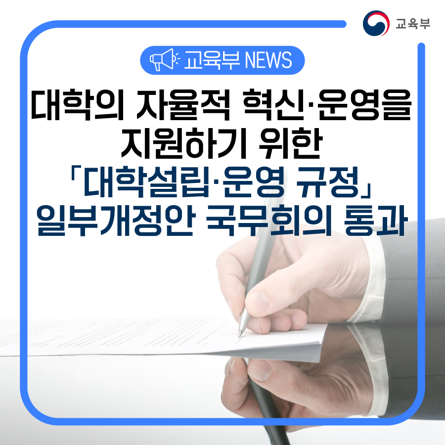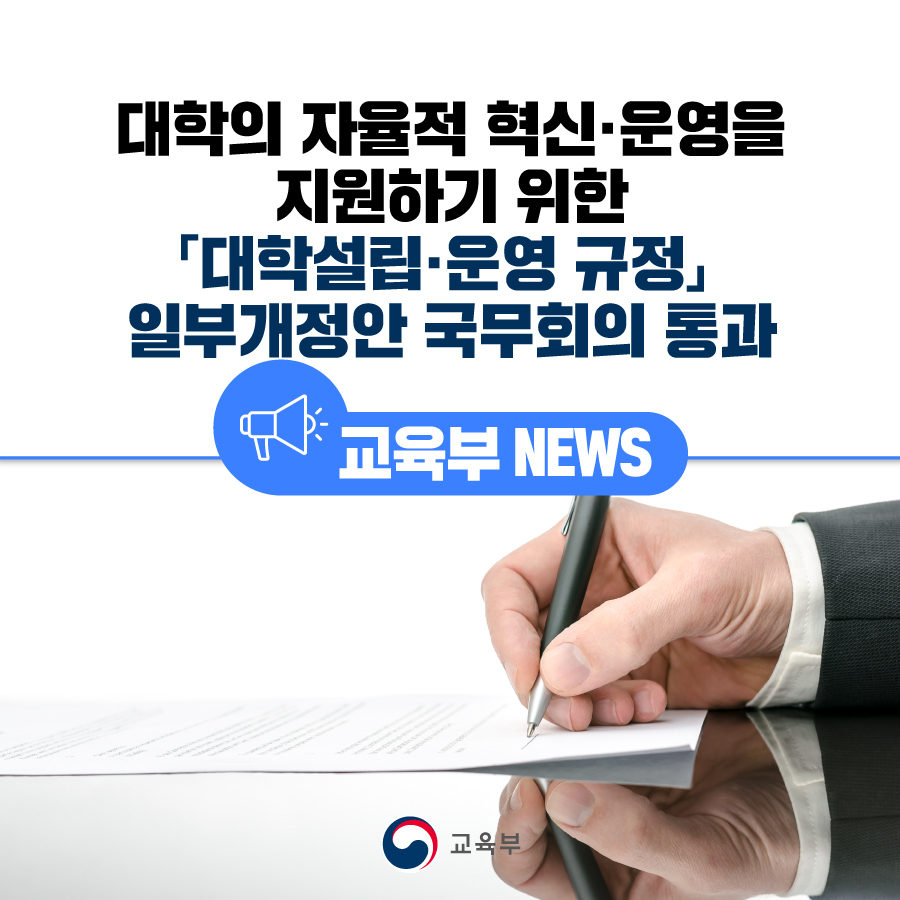 대학의 자율적 혁신·운영을 지원하기 위한 「대학설립·운영 규정」 일부개정안 국무회의 통과 본문