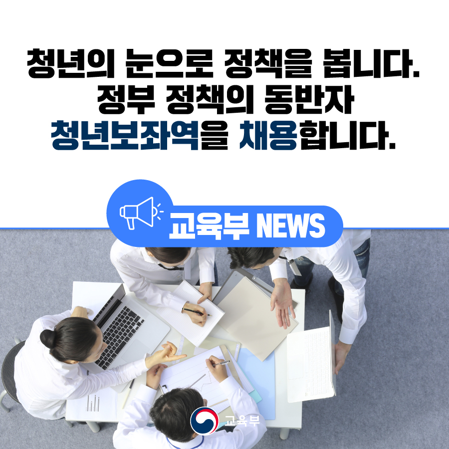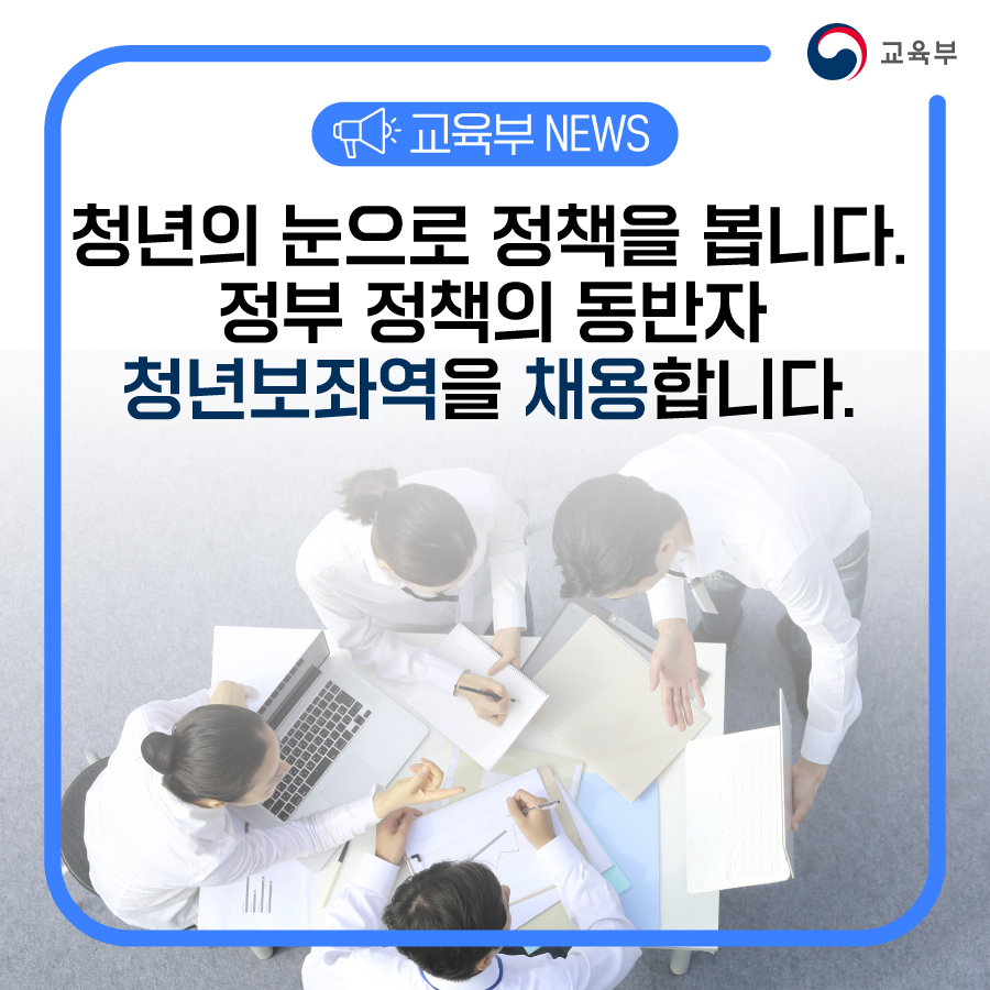 청년의 눈으로 정책을 봅니다.정부 정책의 동반자 청년보좌역을 채용합니다.- 기획재정부 등 24개 장관급 중앙행정기관 청년보좌역 채용공고 -
