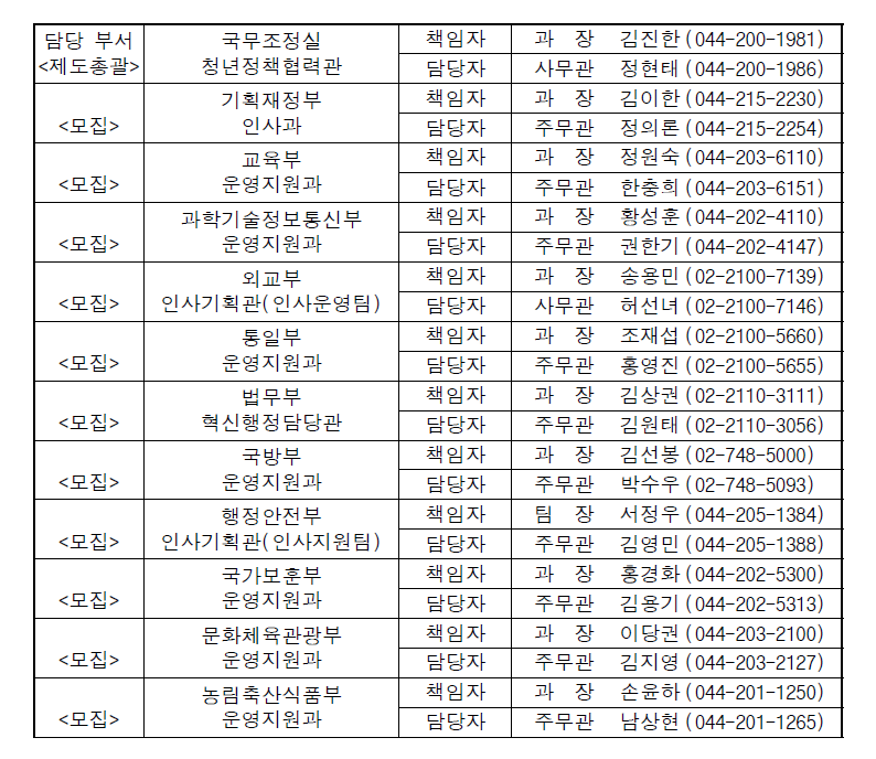 □ 정부는 ‘23.9.15.(금) 채용공고를 시작으로 24개 장관급 중앙행정기관에서 청년의 목소리를 대변할 청년보좌역을 채용한다.